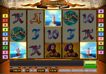 Columbus Deluxe ist ein Slot mit fünf Walzen, auf denen sich die gewinnbringenden Symbole befinden. Auf insgesamt 10 Gewinnlinien, die in ihrer Zahl veränderbar sind, darf der Spieler sein Glück versuchen. Mit einem Minimaleinsatz von 4 Cent bis maximal 5 Euro pro Linie darf hier gespielt werden – bei zehn Linien ergibt das einen Gesamteinsatz in Höhe von 40 Cent bis 50 Euro.